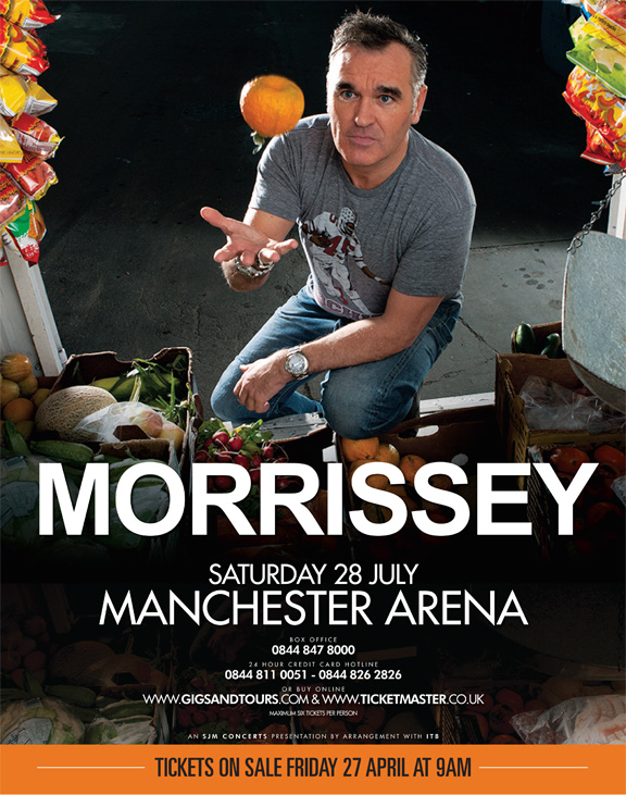 Morrissey will return home to Manchester for his biggest concert to date as an independent, unsigned artist. The former Smiths frontman will perform at the city’s MEN Arena on Saturday 28th July, following a globe-trotting tour that will have taken in South America, Japan, Hawaii and parts of the USA as well as southern Europe.